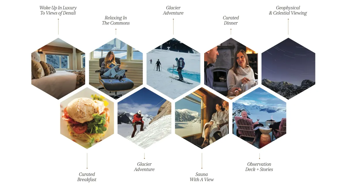 Autumn features the return of the aurora borealis as the night skies bid farewell to the midnight sun. Evenings sparkle brilliantly with heavenly displays of the aurora and stars, and winter's snowfall begins to blanket the massive amphitheater, which averages over 100 feet of new snow per year. World-class stargazing on our observation deck is enhanced by the cozy fire and satisfying beverages custom crafted by your private chef.
